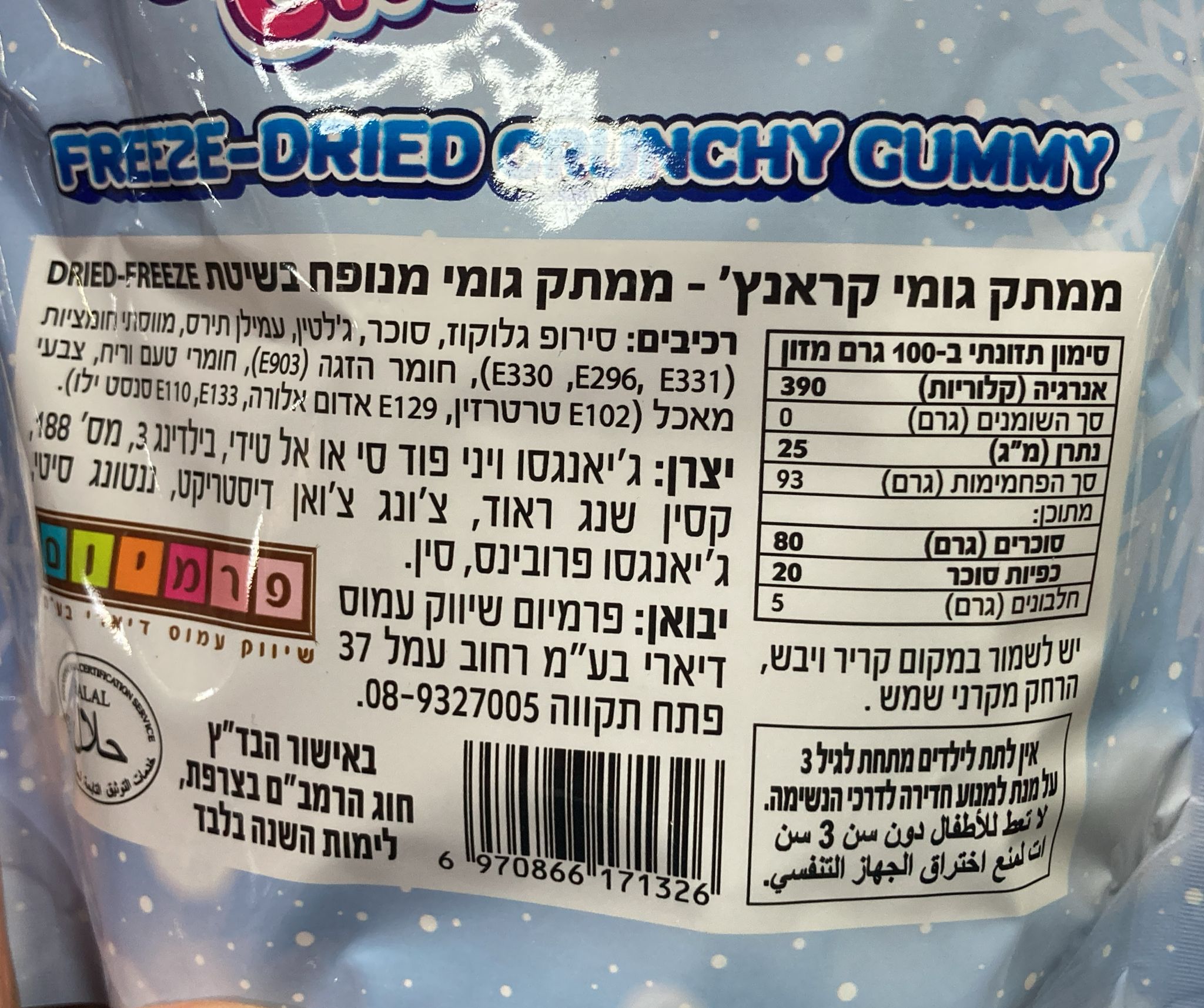 גומי קראנץ' אבטיח/נחשים/טבעות אפרסק/בורגר 120 גרם