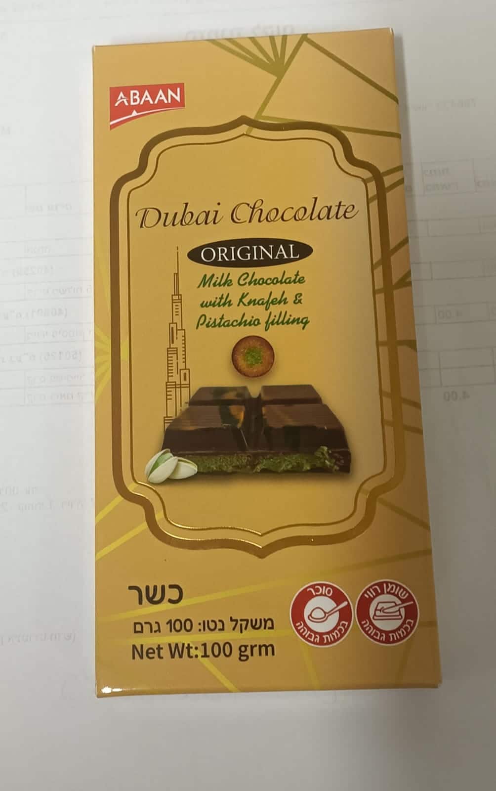 פרלין דובאי שוקולד חלב במילוי פיסטוק וקדאיף 500 גרם