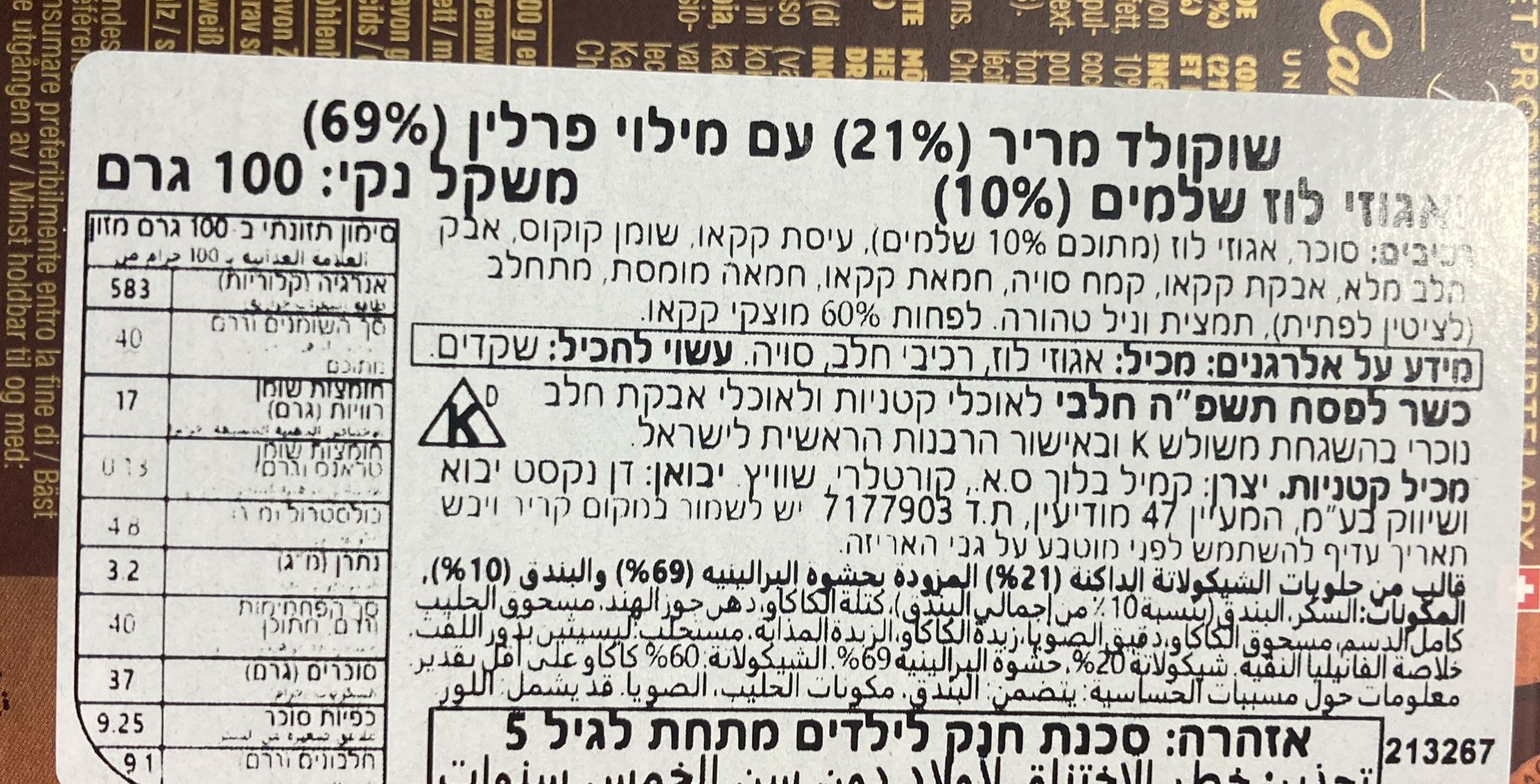 לשאלות על רכיבים ו / או אלרגיות נא לפנות לשירות לקוחות *9242