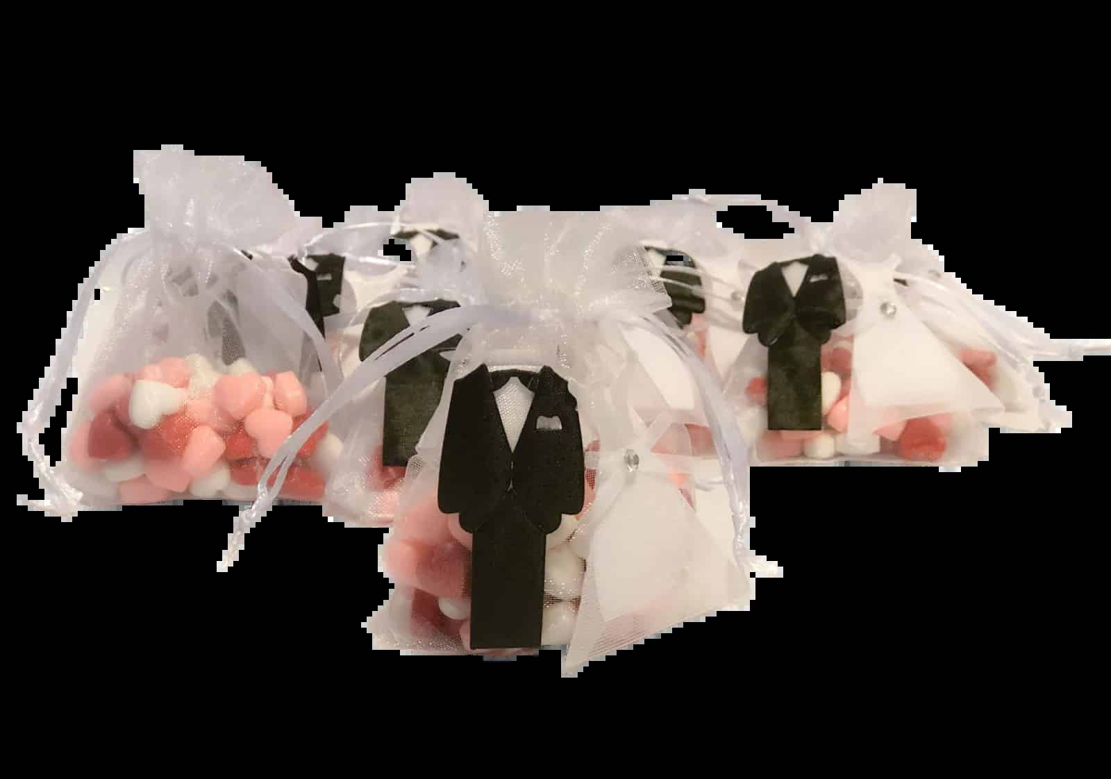 שקית אורג'+זרקון 7/9 ס"מ-לבן+חתן כלה(ארוז 12 יח בשקית)