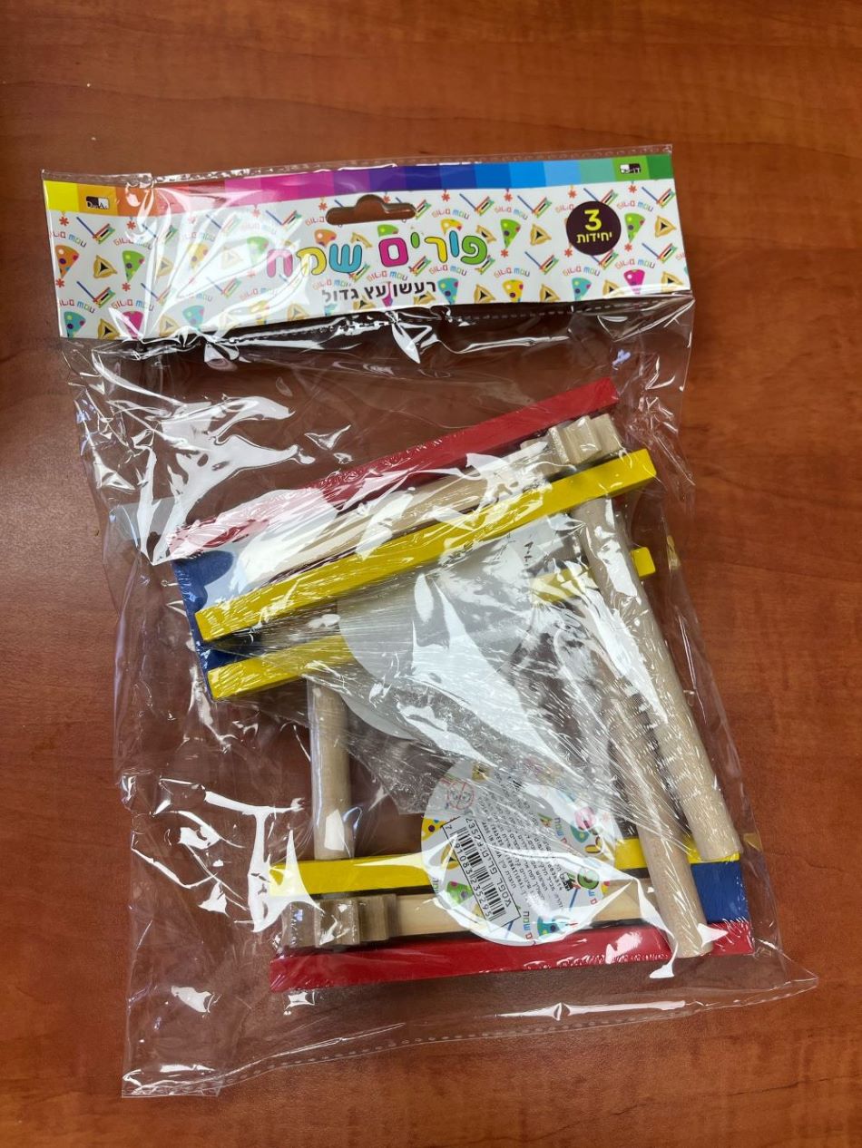 3 רעשן עץ גדול צבעוני 14.5X15 סמ